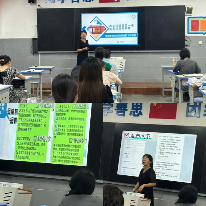 肖雅静老师展开讲解班委会的建设,旨在为教学工作提供更好的后援保障,详细解读了家委会的建设和职责,为班主任工作做好支持。