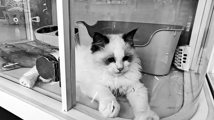 “免费认领”宠物店中的小猫。