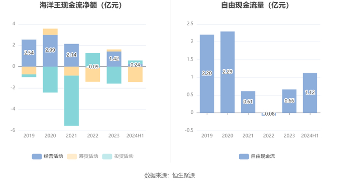 进一步统计发现,2024年上半年公司自由现金流为1.12亿元,上年同期为-0.16亿元。