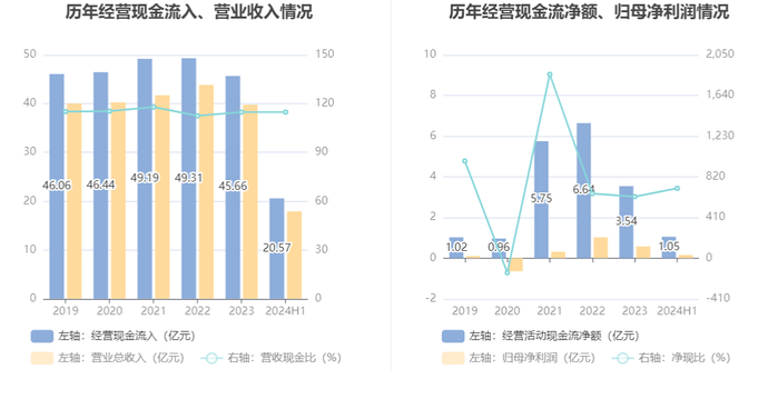 2024年上半年,公司营业收入现金比为114.78%,净现比为703.87%。