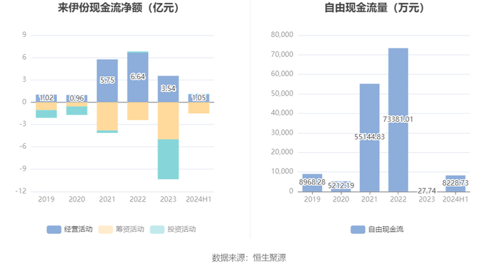 进一步统计发现,2024年上半年公司自由现金流为8228.73万元,上年同期为-13266.33万元。