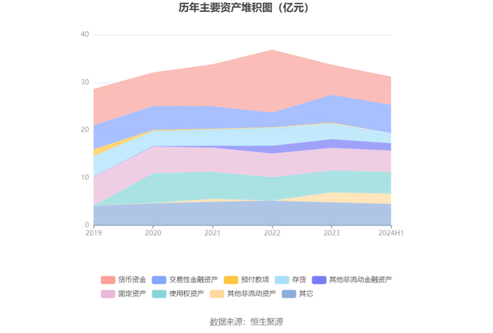 资产重大变化方面,截至2024年上半年末,公司存货较上年末减少40.49%,占公司总资产比重下降3.50个百分点;交易性金融资产较上年末增加1.68%,占公司总资产比重上升1.72个百分点;使用权资产较上年末减少1.80%,占公司总资产比重上升0.83个百分点;其他非流动资产较上年末增加1.81%,占公司总资产比重上升0.63个百分点。