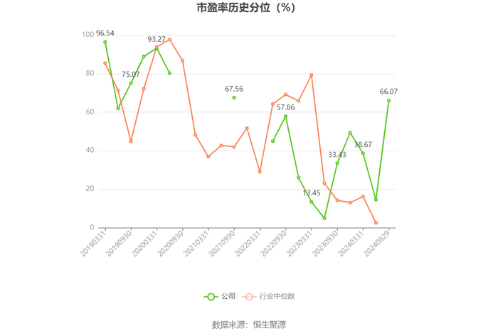 市盈率为负时,不显示当期分位数,会导致折线图中断。