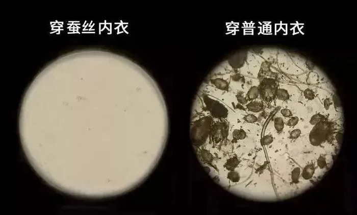 看我穿了两个月后拿去和之前普通内衣,放到显微镜下对比,这件蚕丝内衣几乎没有什么细菌!