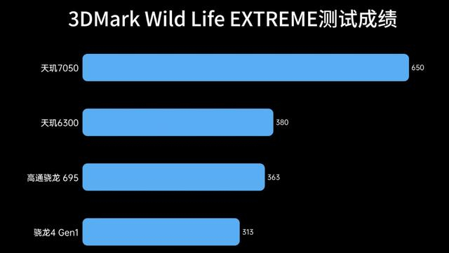 GPU性能方面,天玑6300的3DMark Wild Life EXTREME得分为380分,勉强超过了骁龙695。