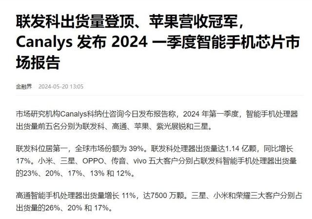 我们今天继续测试一下入门级处理器的新宠:天玑6300。这里有人肯定要问了,联发科的入门处理器型号怎么这么多,各种型号多到分不清。这种情况其实是联发科深耕中端和入门级市场的一种体现,根据媒体报道,2024年第一季度,按照智能手机处理器出货量进行排名,联发科以39%的全球市场份额位居第一,出货量达1.14亿颗。