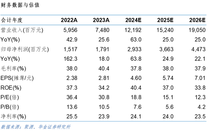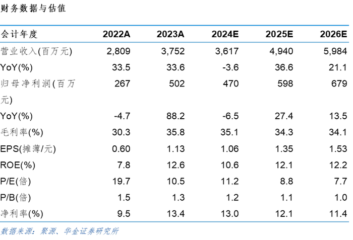 投资建议:公司受益于前期以新兴市场为主的差异化布局,在新兴市场中表现突出,以及公司户用逆变器产品渠道及成本控制优势显著。我们预计公司2024-2026归母净利润分别为29.3、36.63及44.73亿元,对应EPS分别为4.6、5.74及7.01元/股,对应PE分别为18.8、15.1及12.3倍,维持“买入-A”评级。