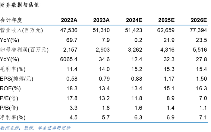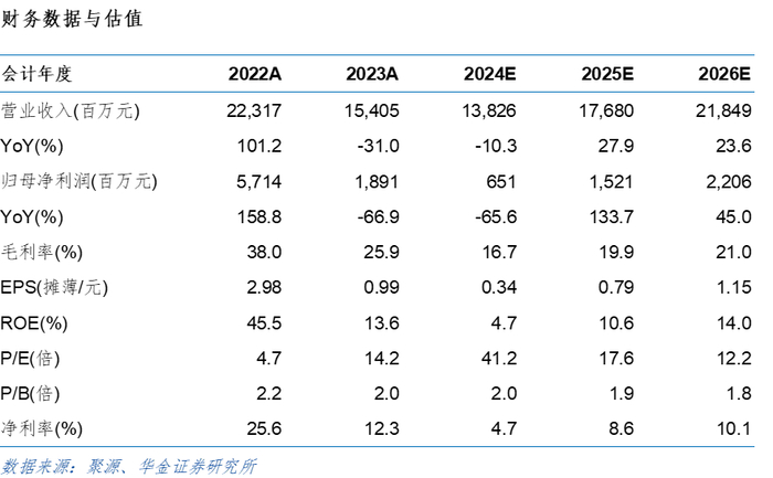 投资建议:公司快速推进光伏一体化产能建设,并持续扩大储能市场。我们预计公司2024-2026归母净利润分别为32.62、43.16及55.16亿元,对应EPS分别为0.88、1.17及1.50元/股,对应PE分别为11.8、8.9及7.0倍,维持“买入-A”评级。