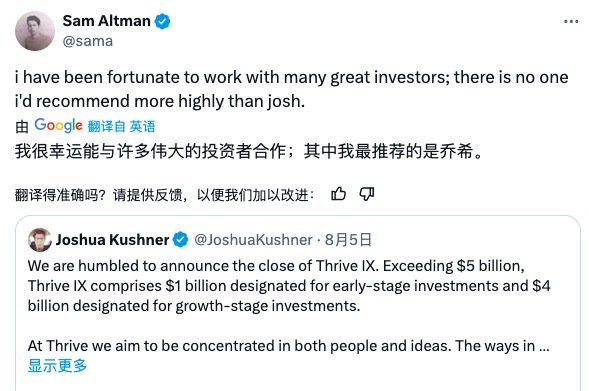 OpenAI的首席执行官山姆·奥尔特曼(Sam Altman)8月8日在社交媒体X上发文称,我很幸运能与许多伟大的投资者合作;其中我最推荐的是乔希。