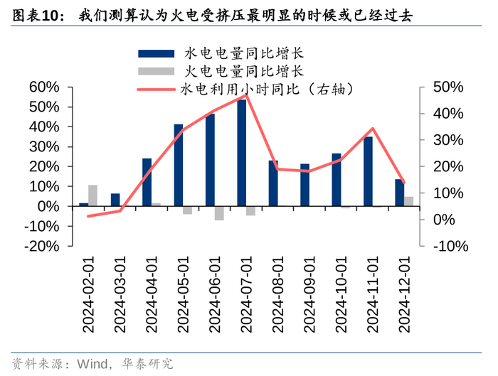 水电的挤压效应正在逐步减弱,短期看火电在电价方面仍有议价能力