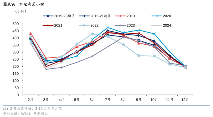 最后,根据我们的测算,来水修复对火电的挤压效应在7月的影响幅度可能是年内最高的,8-12月火电利用小时就可能会有所缓解;据此,我们不认为当前的月度长协价格会持续到年底,甚至影响2025年年度长协电价。