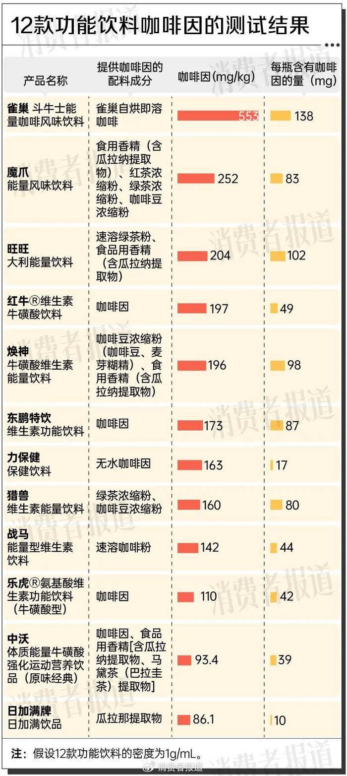 2024年8月,《消费者报道》向权威第三方检测机构送检了12款功能饮料,“抗疲劳”谁更胜一筹?