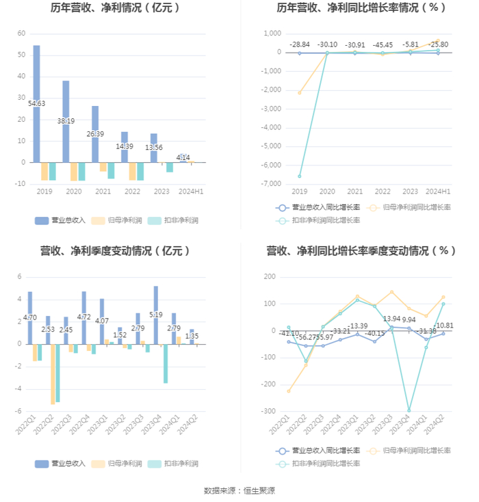 进一步统计发现,2024年上半年公司自由现金流为-1.14亿元,上年同期为-2.74亿元。