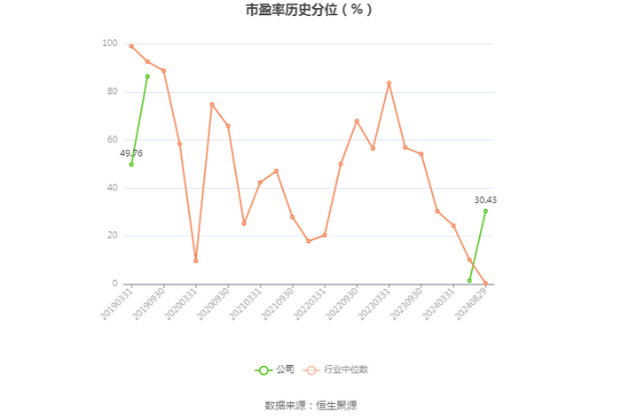 市盈率为负时,不显示当期分位数,会导致折线图中断。