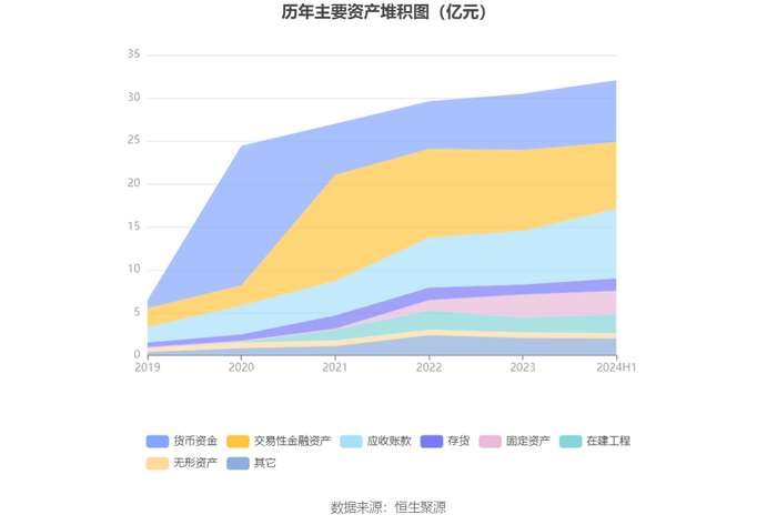 资产重大变化方面,截至2024年上半年末,公司交易性金融资产较上年末减少17.76%,占公司总资产比重下降6.75个百分点;应收账款较上年末增加30.08%,占公司总资产比重上升4.84个百分点;在建工程较上年末增加28.00%,占公司总资产比重上升1.22个百分点;货币资金较上年末增加10.13%,占公司总资产比重上升1.00个百分点。