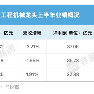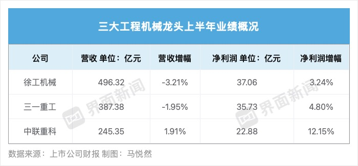 上半年业绩出炉,三大工程机械龙头净利均保持增长态势。