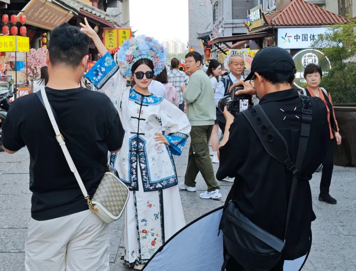 “我在微信朋友圈里看到了朋友在曹魏古城拍摄的照片。她的汉服妆造很惊艳,与曹魏古城的建筑风格相得益彰,今天我特意来感受一下浓郁的三国文化氛围。”在曹魏古城南大街一家汉服店内,来自武汉的游客张薇薇一边卸妆一边说。张薇薇表示,她来许昌之前就做好了“旅游攻略”,其中穿汉服游曹魏古城、品尝美食、观看演出是“重头戏”,一天游玩下来,她感觉不虚此行。