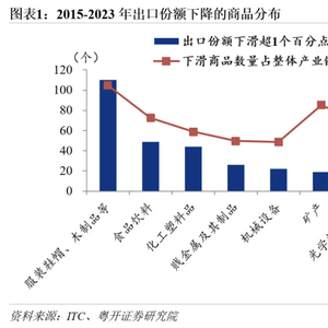 2010年以来,产业外迁导致中国部分商品出口份额显著下滑,详见《中国出口的全球份额(2001-2023):趋势、结构及展望》。近年来中国企业掀起新一轮“出海潮”,这是百年未有之变局的主动应对,是“走出去”的国际化行动,但同时也引发了市场对产业外迁和相关行业就业压力的担忧。