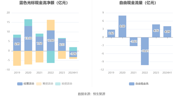 进一步统计发现,2024年上半年公司自由现金流为4.09亿元,上年同期为-3.90亿元。
