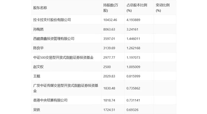 半年报显示,2024年上半年末公司十大流通股东中,新进股东为广发中证传媒交易型开放式指数证券投资基金,取代了一季度末的李芃。在具体持股比例上,陈良华、中证500交易型开放式指数证券投资基金持股有所上升,香港中央结算有限公司持股有所下降。