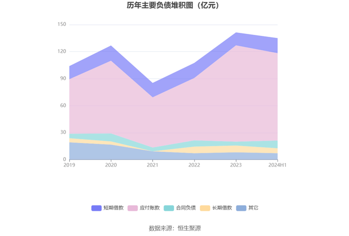 负债重大变化方面,截至2024年上半年末,公司应付账款较上年末减少9.39%,占公司总资产比重下降3.88个百分点;合同负债较上年末增加101.77%,占公司总资产比重上升2.06个百分点;短期借款较上年末增加16.65%,占公司总资产比重上升1.23个百分点;长期借款较上年末减少26.48%,占公司总资产比重下降0.88个百分点。
