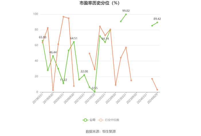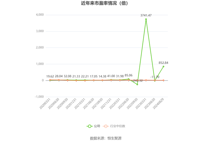 市盈率为负时,不显示当期分位数,会导致折线图中断。