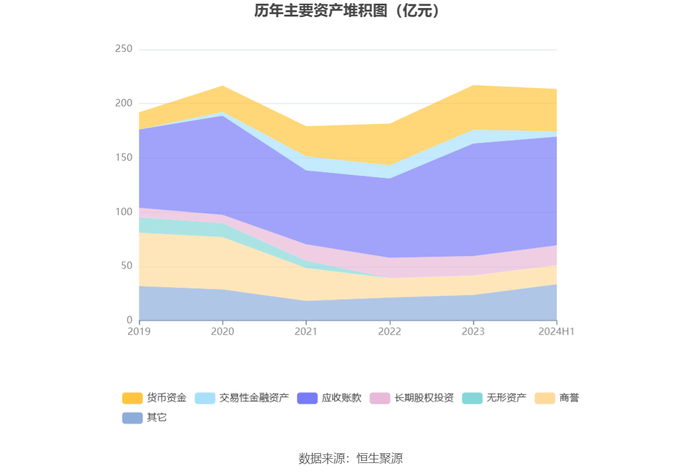资产重大变化方面,截至2024年上半年末,公司交易性金融资产较上年末减少62.52%,占公司总资产比重下降3.61个百分点;债权投资合计较上年末增加1445.82%,占公司总资产比重上升2.88个百分点;应收账款较上年末减少3.46%,占公司总资产比重下降0.89个百分点;预付款项较上年末增加153.93%,占公司总资产比重上升0.86个百分点。