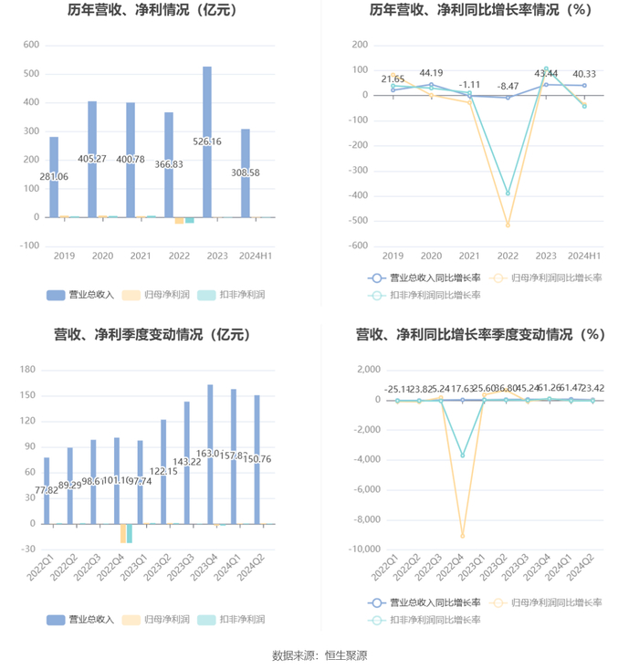 根据半年报,公司第二季度实现营业总收入150.76亿元,同比增长23.42%,环比下降4.47%;归母净利润1.01亿元,同比下降26.02%,环比增长22.44%;扣非净利润7005.41万元,同比下降44.78%,环比下降12.31%。