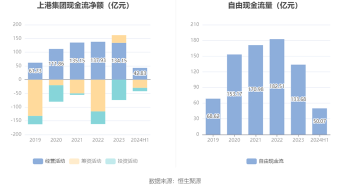 进一步统计发现,2024年上半年公司自由现金流为50.07亿元,相比上年同期下降54.62%。