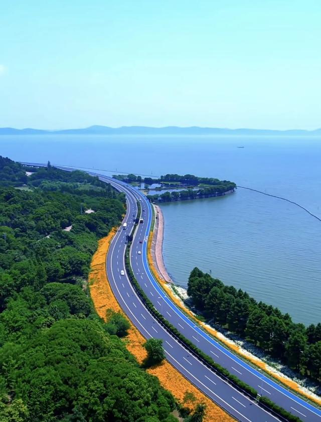 “走过十里明珠堤,沿湖山路进入高架,最高点上跨苏锡常南部高速,一路湖光山色令人大饱眼福。”
