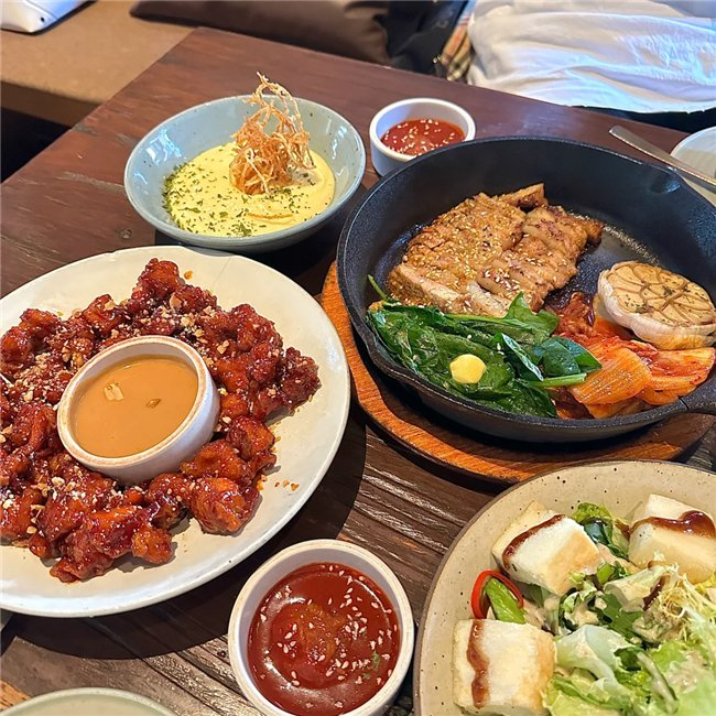 辣酱八爪鱼五花肉,这道菜无疑是当晚的亮点之一。八爪鱼和五花肉在韩式辣酱的衬托下,味道层次分明,既有海鲜的鲜美又有肉类的醇厚,每一口都是满满的幸福感。明虾辣酱奶油意面,一道创意十足的意面,将传统意大利面与韩式辣酱巧妙结合。意面Q弹有嚼劲,搭配新鲜明虾和特制奶油酱,再加入少许辣酱,口感丰富而不过于油腻,成为当晚的必点佳肴。