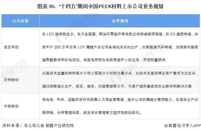 “十四五”期间,PEEK材料代表性企业在年报中披露其公司战略、经营规划等,其具体业务规划如下: