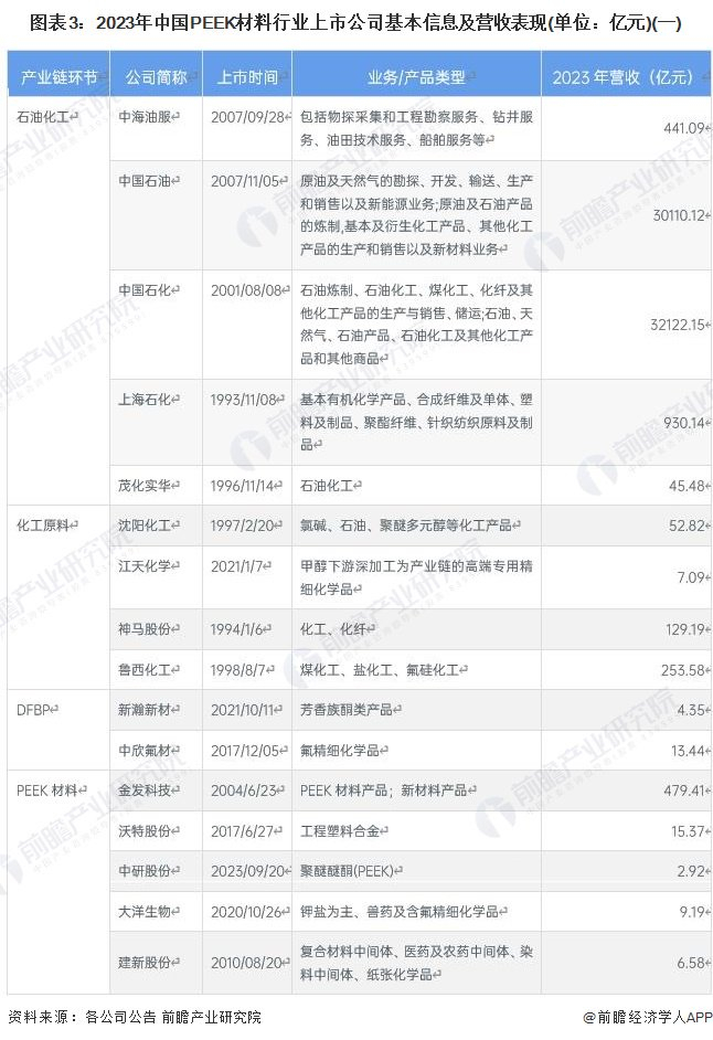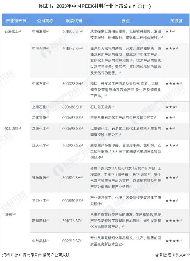1、PEEK材料行业上市公司汇总