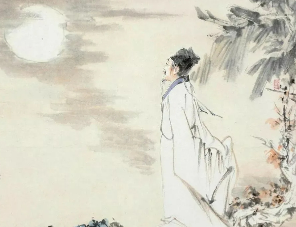 苏轼将酒撒入江中,去祭奠这江上的明月。