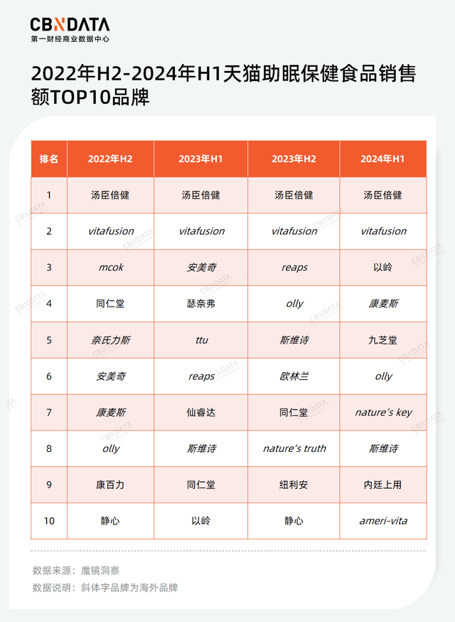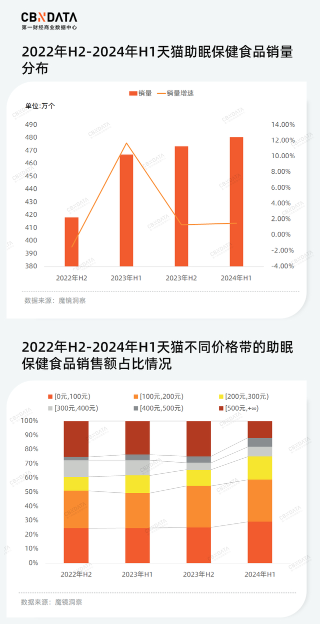 注:CBNData根据魔镜洞察数据,基于天猫平台保健食品、婴幼儿营养品、孕产妇营养品类目中商品标题包括“睡眠”或“助眠”的产品进行分析。