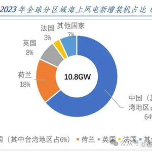 欧洲方面,根据 WindEurope 预测,2023 年欧洲新增海上风电 3.8GW,德国是欧洲最大 风电装机国,荷兰、英国、法国、丹麦和挪威为主要新增海上风电装机国,土耳其、塞 尔维亚等非欧盟国家也有相当规模的新增装机。预计 2024-2030 年欧洲新增装机共 260GW,其中 94GW 为海上风电,年新增装机量将超过达成气候和能源目标所需的 33GW/年。欧洲海风年度装机量将在 2030 年达到 31.4GW,首次反超陆风,为全球 海上风力发电市场增长提供动力。