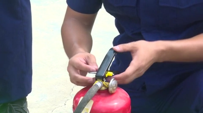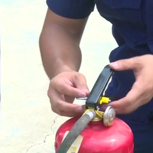 “使用灭火器的时候,首先要把插销拔出来,离火源两到三米,拿着导管对着火源的根部,不要在上面扫。”在灭火实操中,消防宣传人员向学生讲解灭火器的检查及使用方法、注意事项,并指导学生正确使用灭火器扑灭模拟火源。通过“沉浸式”体验,让在场学生听得懂,看得清、学得会。
