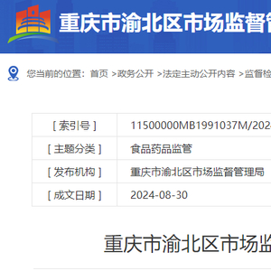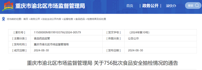 重庆市渝北区市场监督管理局 关于756批次食品安全抽检情况的通告