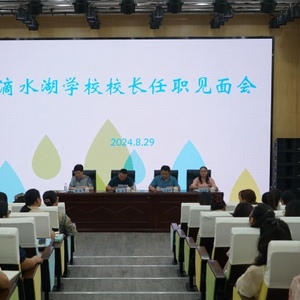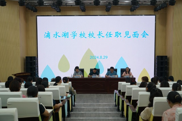 8月29日下午,湘潭市岳塘区滴水湖学校召开校长任职见面会。岳塘区教育局党委书记、局长徐进,岳塘区教育局党委委员、副局长朱海军出席。会议由滴水湖学校党支部书记曹峰主持。