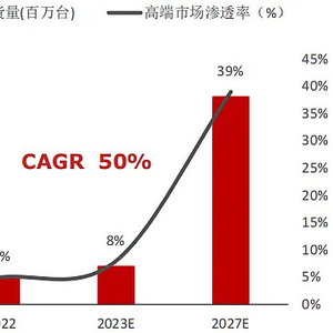 目前折叠屏在高端手机中的渗透率约为15%,渗透率并不高,中低端手机的渗透率更是只有个位数,未来随着国产厂商竞争实力提升,价格下降是大势所趋,加上厚度和重量等制约因素解除,折叠屏的渗透率有望迎来一波加速提升。
