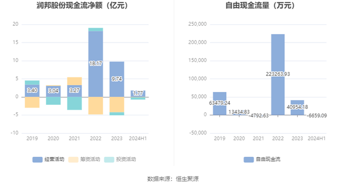 进一步统计发现,2024年上半年公司自由现金流为-6659.09万元,上年同期为136089.25万元。