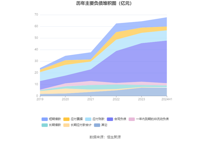 负债重大变化方面,截至2024年上半年末,公司合同负债较上年末增加10.83%,占公司总资产比重上升1.91个百分点;短期借款较上年末增加46.49%,占公司总资产比重上升2.04个百分点;应付票据较上年末减少27.78%,占公司总资产比重下降1.31个百分点;一年内到期的非流动负债较上年末减少31.70%,占公司总资产比重下降0.91个百分点。