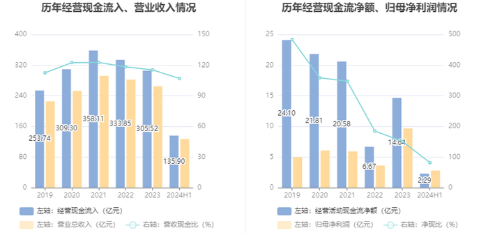 2024年上半年,公司营业收入现金比为106.89%,净现比为81.63%。