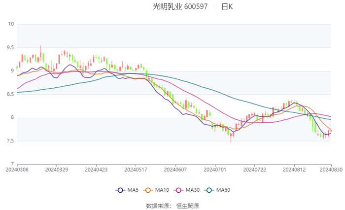光明乳业:2024年上半年净利润2.8亿元 同比下降17.03%