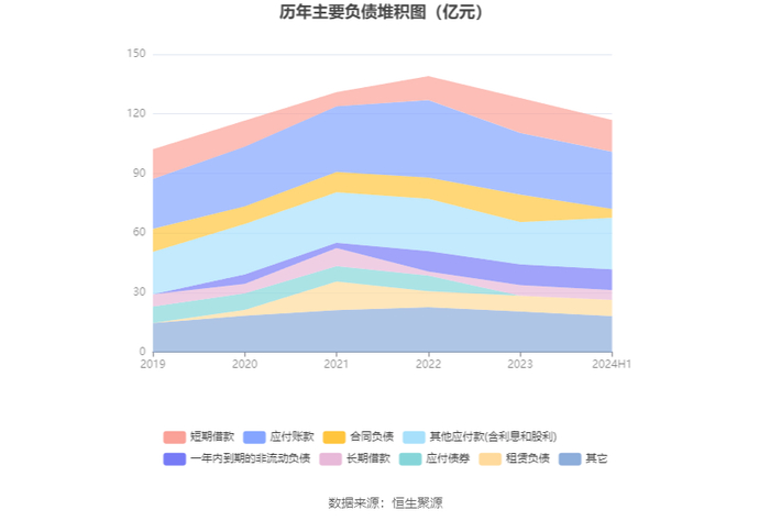 负债重大变化方面,截至2024年上半年末,公司合同负债较上年末减少67.20%,占公司总资产比重下降3.73个百分点;其他应付款(含利息和股利)较上年末增加22.14%,占公司总资产比重上升2.54个百分点;应付账款较上年末减少7.61%,占公司总资产比重下降0.31个百分点;短期借款较上年末减少9.22%,占公司总资产比重下降0.29个百分点。