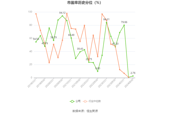 市盈率为负时,不显示当期分位数,会导致折线图中断。