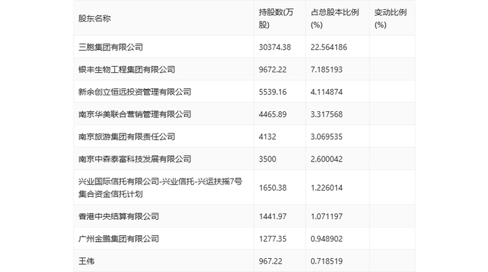 值得注意的是,根据半年报数据,南京新百17.83%股份处于质押状态。其中,第二大股东银丰生物工程集团有限公司质押9668.42万股公司股份,占其全部持股的99.96%。