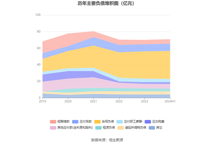 负债重大变化方面,截至2024年上半年末,公司合同负债较上年末增加2.36%,占公司总资产比重上升0.15个百分点;应付职工薪酬较上年末减少9.28%,占公司总资产比重下降0.17个百分点;租赁负债较上年末减少8.36%,占公司总资产比重下降0.13个百分点;短期借款较上年末增加3.96%,占公司总资产比重上升0.06个百分点。