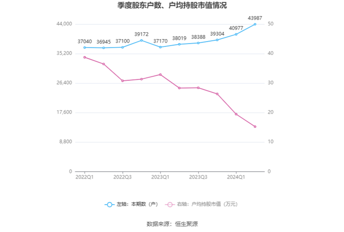 筹码集中度方面,截至2024年上半年末,公司股东总户数为4.4万户,较一季度末增长了3010户,增幅7.35%;户均持股市值由一季度末的19.51万元下降至15.27万元,降幅为21.73%。