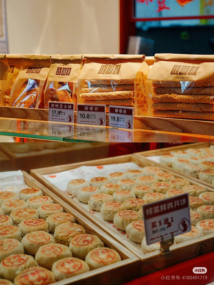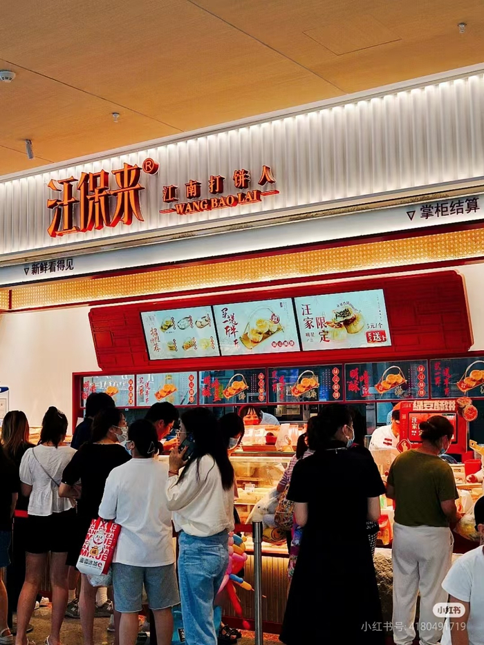 汪保来,由创始人名字命名的新中式糕点,以“江南打饼人”为slogan,通过家传的古法手艺呈现“鲜、香、酥、脆”的独家江南风味,强调“手作新鲜、现烤现卖”。凭借绿豆酥饼出圈,并推出黄油桃酥、绿豆冰糕、海苔小贝、冰酪福团等人气爆款。